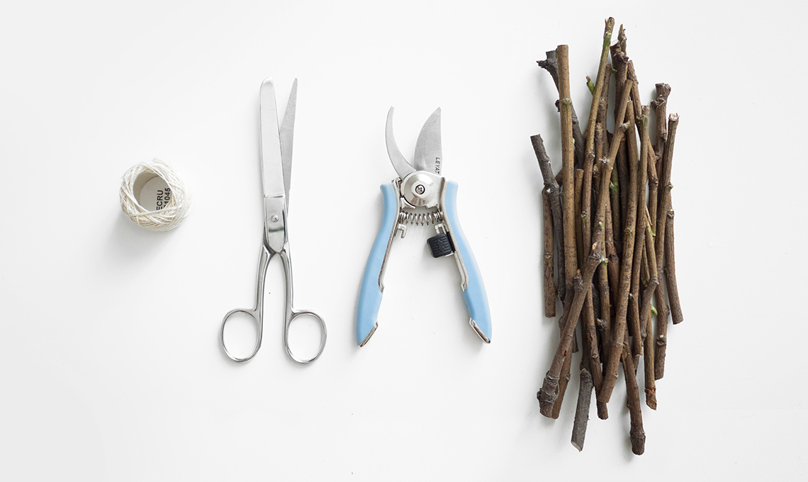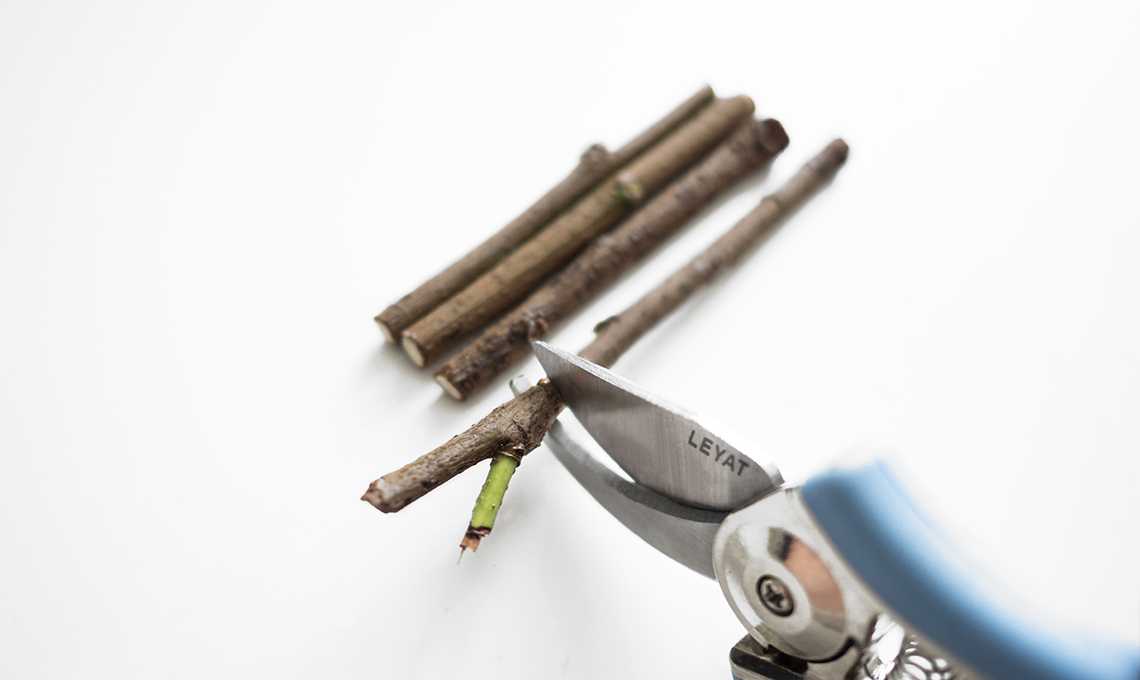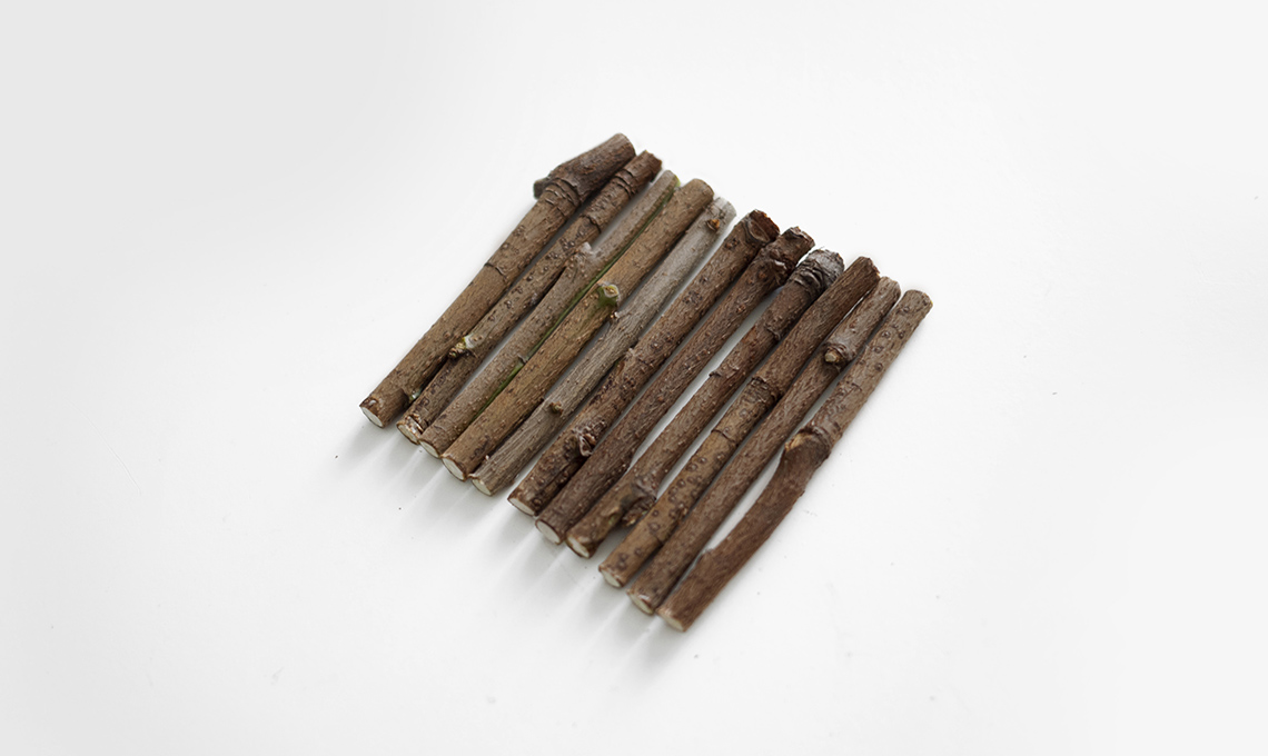- Seleziona dallo stesso albero dei rami del diametro massimo di cm 1. Con le cesoie tagliali ricava dei legnetti di uguale misura: te ne servono 11.