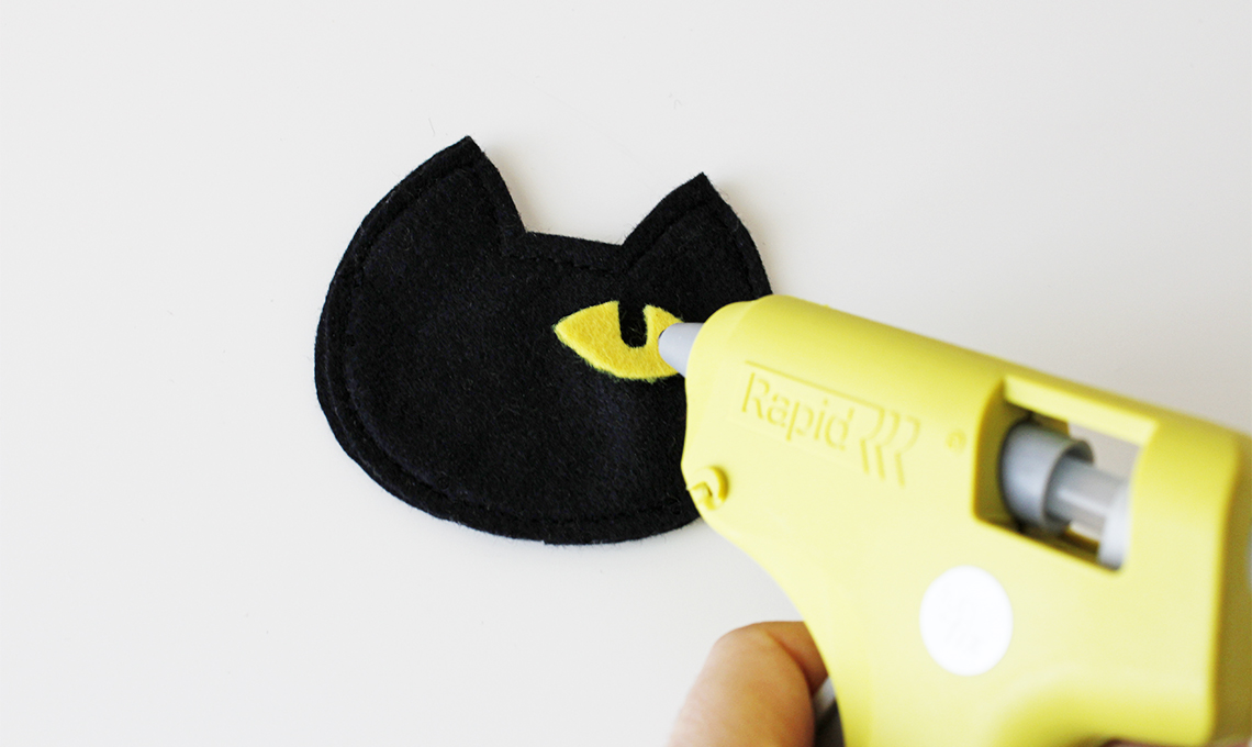 - Incolla gli occhi sulla parte frontale del gatto usando la colla a caldo.