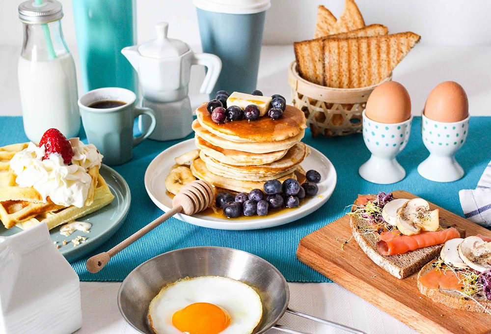 Pancake, cheesecake, avocado toast, uova strapazzate con fette di bacon rosolate in padella o al forno, drink esotici... - accessori must-have