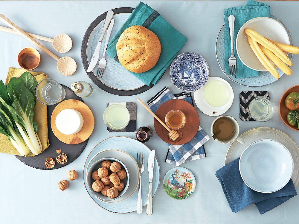 Portauova, salsiere, coltello spalmaburro, un thermos per il caffè lungo. E un’alzatina con campana in vetro per la torta da servire già in porzioni singole.