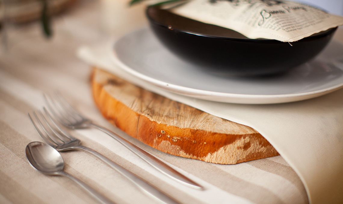 Ci sono moltissime idee per piegare i tovaglioli in modo impeccabile ma non sempre serve strafare...a volte le soluzioni semplici sono le migliori. Utilizza un nastro o uno spago da cucina per legare assieme tovagliolo e posate.