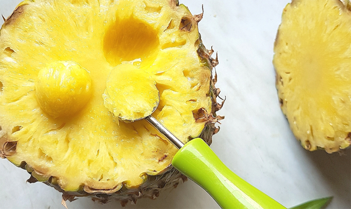 - Per tagliare la calotta di un melone, di una mini anguria, di un ananas o di un pompelmo occorrono solo un tagliere ed un coltello.
