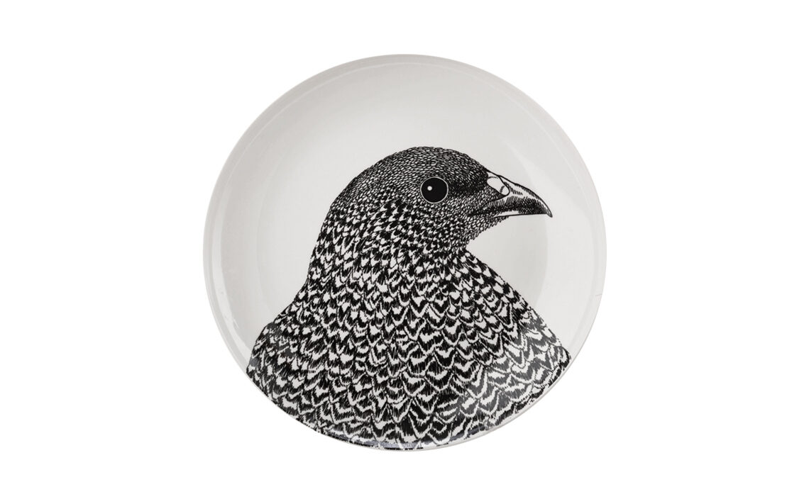 Il vaso Luso [Ibride] si scompone in piattini da dessert e ciotole con le illustrazioni a tema animale di @rachelconvers, dark ma ironiche. sottopiatti [Bitossi Home] e [Fiorirà un Giardino], tovaglioli [Casa], vasi [Serax], bicchieri [Coin Casa] e posate [Sambonet].