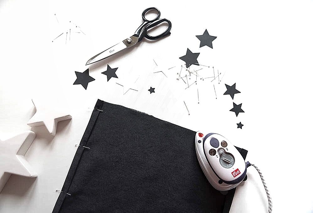 fai una cucitura dritta a distanza piedino dal bordo bloccando la cucitura all’inizio e alla fine e ripeti l’operazione per il secondo lato lungo.