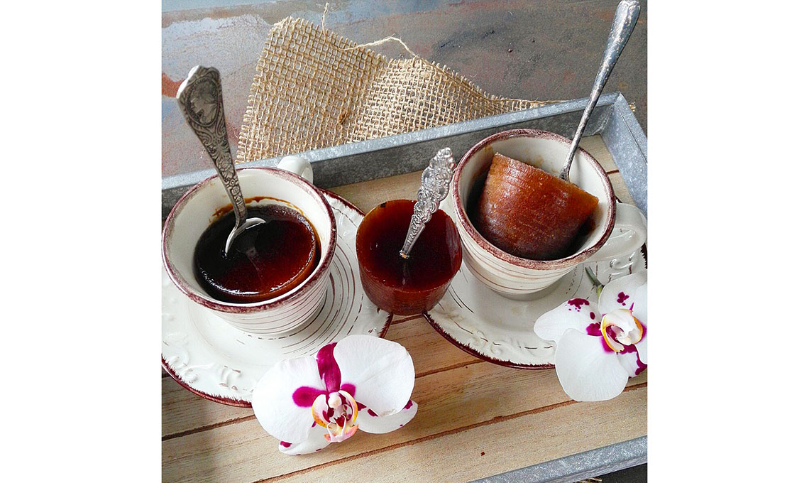 Per il caffè ghiacciato è sufficiente mescolare il caffè preparato con la moka con lo sciroppo di acqua e zucchero (anche latte volendo); versarlo nei bicchierini, riporli in freezer mezz'ora, inserire il bastoncino o cucchiaino e via di nuovo in freezer. Oppure utilizzare una strisciolina di carta stagnola annodata intorno al cucchiaino e fissata ai bordi con dello scotch in modo che mantenga lo stesso posizionato dritto e al centro del composto. I ghiacciolini vanno lasciali in freezer almeno 4 ore, meglio una notte. Potete servirlo appoggiandolo comunque nella tazzina da caffè o su un piccolo vassoio.