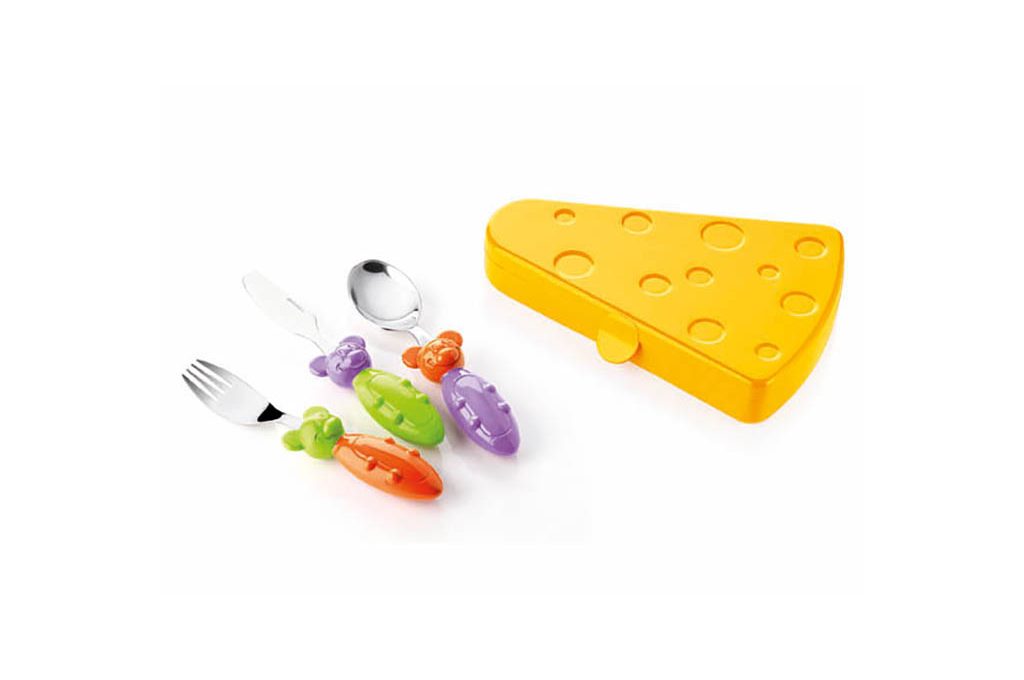 Ogni posata è stata studiata per stimolare e dare sollecitazioni tattili legate a temperatura, colore, consistenza, volume, peso e forma. Lingua e palato vengono così stimolati per poter assaporare a pieno il cibo.