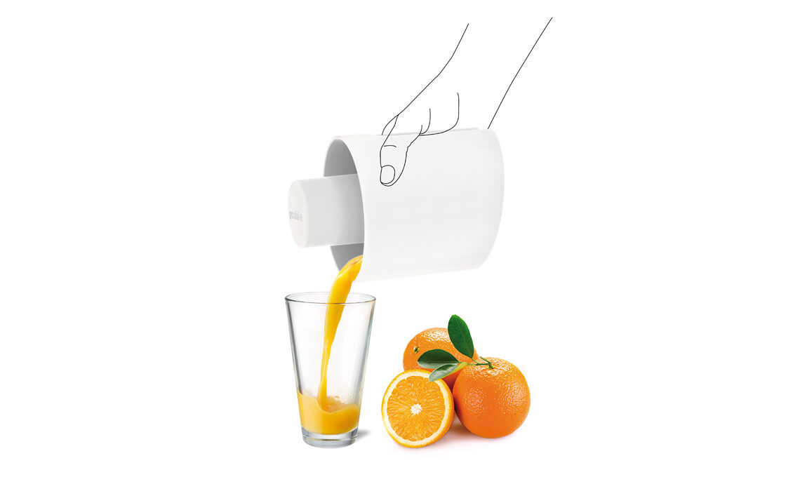 Ufo è lo spremiagrumi in polipropilene riciclabile la cui forma ricorda