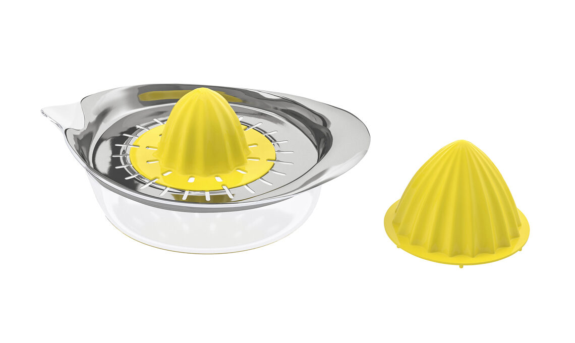 Il tradizionale spremiagrumi perfetto per tutti i tipi di agrumi. Ha in dotazione due coni intercambiabili di dimensioni diverse [Tescoma, ø 16 cm].