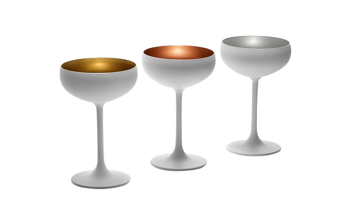 L’ultima tendenza vede il ritorno dei calici vintage come le coppe, delle lavorazioni incise e sfaccettate, del bicolore e dello sfumato. E allora Cin Cin!