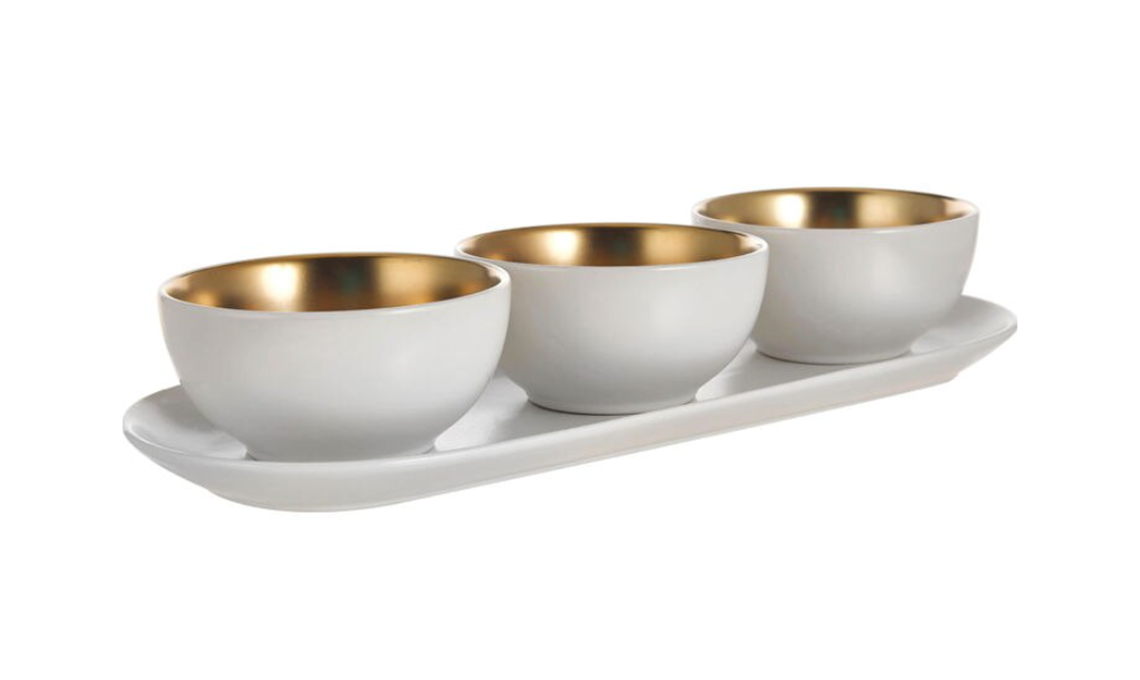 Quale miglior alleato per illuminare e impreziosire la tavola dell’oro? Tradizionale e senza tempo, la rende subito speciale e preziosa, anche quando è abbinato a semplici piatti bianchi. Non dimenticare un pizzico di natura come dei rami di eucalipto dorati e usa un colore a contrasto per dare l’accento ai dettagli.