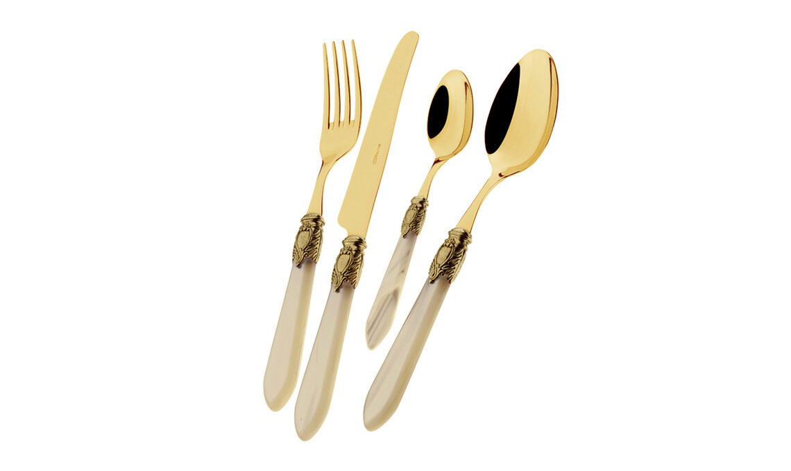 Posate color oro. L’ultimo tocco glamour che fa pendant con i calici.