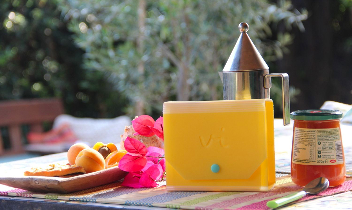 'Vi' lunch box è composta da una forchetta pieghevole e una scatola di plastica che, una volta richiusa su sé stessa occupa lo spazio di uno smartphone!