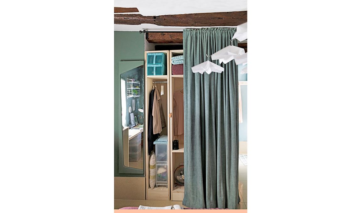 Il guardaroba apri-e- chiudi è l’idea da copiare dalla camera da letto della casa Prima&Dopo di Giusi. È ideale nelle case in affitto temporaneo: dietro tieni le tue cose e davanti è a disposizione degli ospiti.