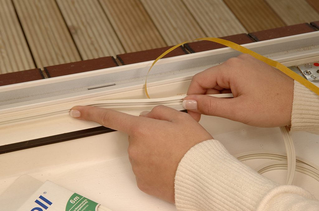 Pulisci e sgrassa bene la superficie, quindi applica facendo pressione una guarnizione adesiva ‘termoplastica’ (se stai intervenendo sulla battuta dei telai) o un listello o binario paraspifferi (se stai invece intervenendo alla base di una portafinestra), in modo da bloccare il passaggio d’aria.