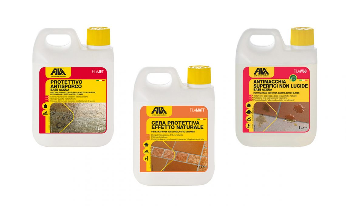 Nuovo trattamento anti-vaiolo: sulla superficie già lavata, passa Fila W68 per ridurre l’assorbimeno del cotto [€37,50/1 lt]. Stendi FilaJet per proteggere dall’usura ed evitare la presa dello sporco [€20,30/1lt]. Infine, passa un velo di cera liquida Filamatt [€22,80/1 lt]. Tutto di Fila.