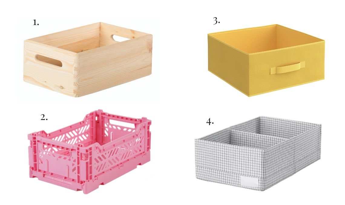 Robusti e poco profondi, questi contenitori sono perfetti per avere giochi ordinati e sempre visibili. 1. Cesta in legno, da dipingere e personalizzare insieme ai bambini [Leroy Merlin, €4,29] 2. Pieghevole e resistente, la box in plastica riciclata colorata [Aykasa €5,50 su lecivettesulcomo.com] 3. Contenitore leggerissimo e pieghevole, con pratica maniglia [Leroy Merlin, €2,99] 4. Scatola a scomparti in poliestere riciclato Stuk [Ikea, €3].