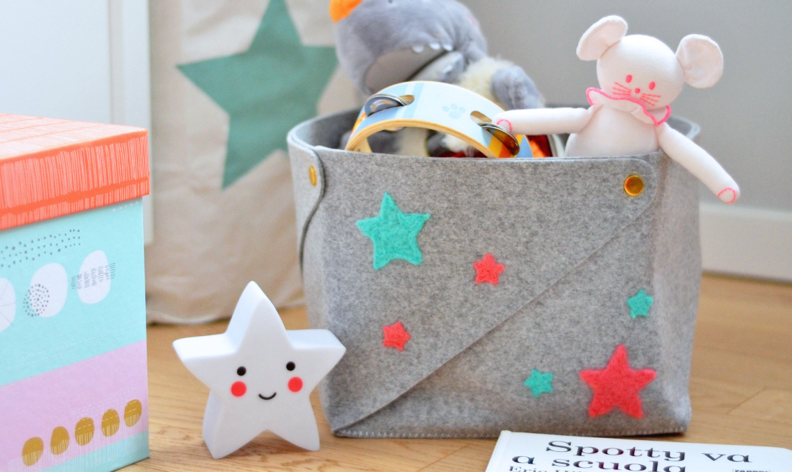 Scopri come trasformare una cesta in feltro in un porta giochi pratico e decorativo.
