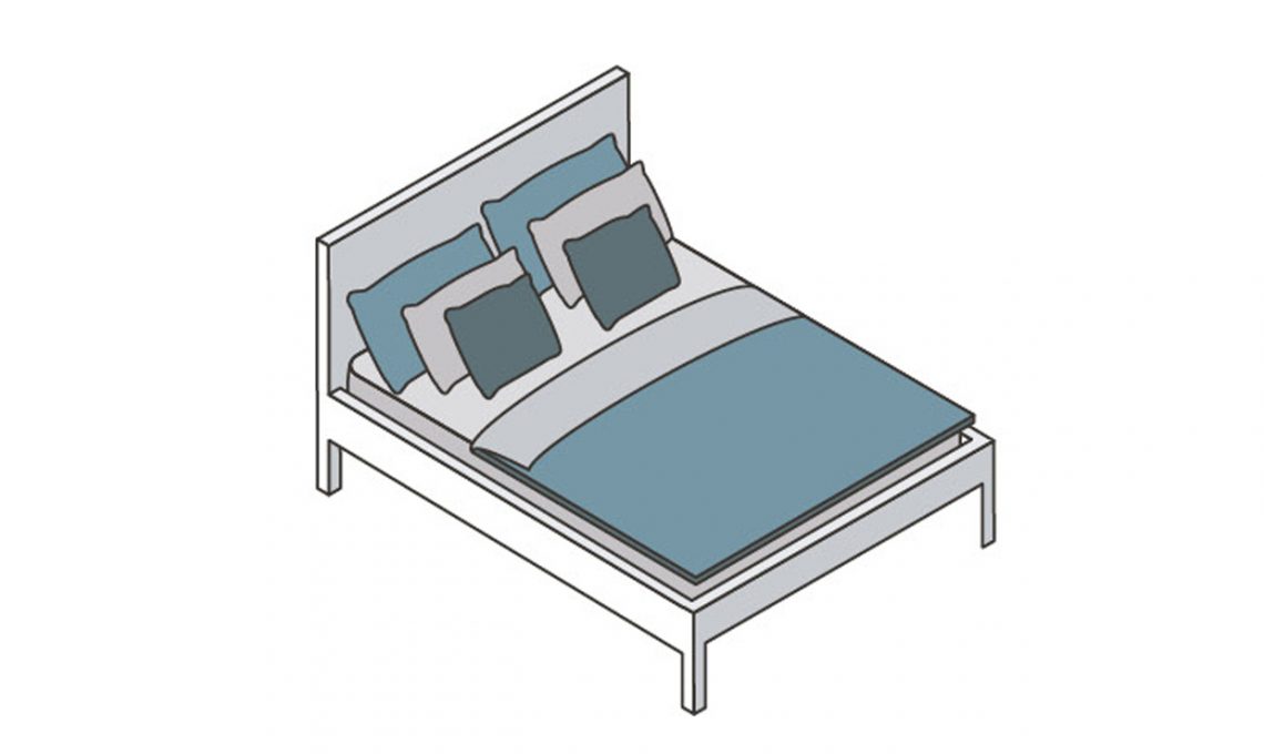 Abbiamo passato 'ai raggi X' tutte le parti che compongono il letto. Possono ovviamente variare secondo i tuoi gusti e le stagioni dell’anno (al posto della trapunta puoi avere il piumino, oppure nulla; così come non sempre si mette il copriletto): cuscino lungo, rettangolare o a rullo, guanciali in diverse dimensioni, cuscini decorativi, trapunta, copriletto, lenzuolo 'sopra', lenzuolo 'sotto', coprimaterasso, materasso e struttura del letto.
