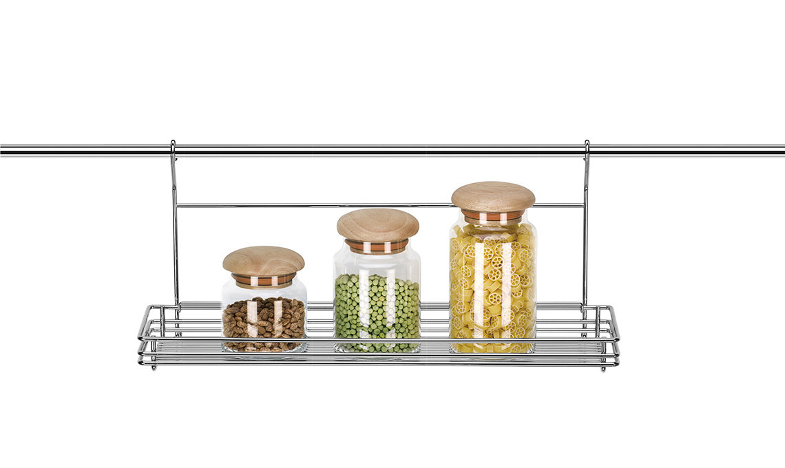 - Mensola portaspezie Linea Monti, in acciaio con finitura cromo di Tescoma.