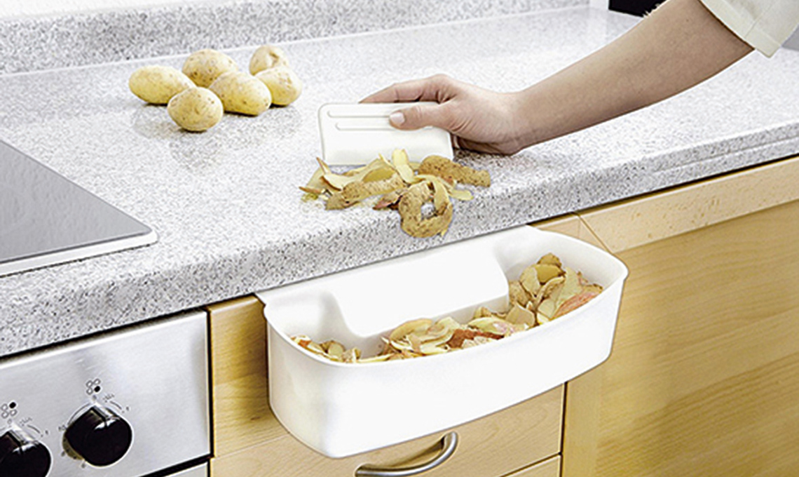 - Vassoio per rifiuti da agganciare all'anta, lavabile in lavastoviglie di Wenko.