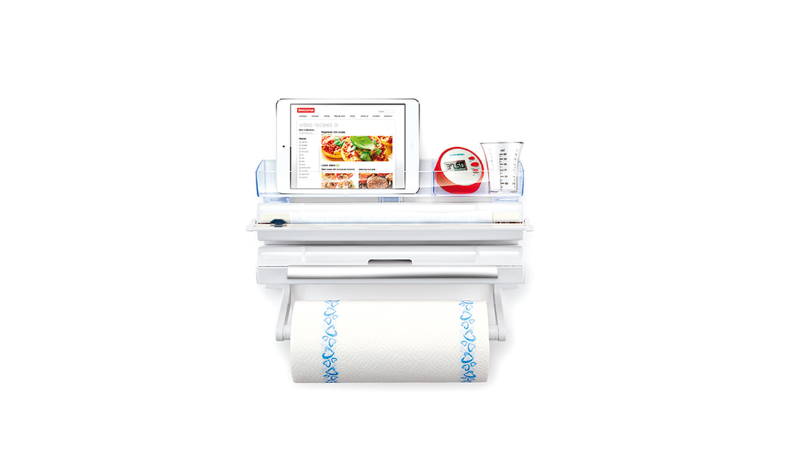 - Portarotoli accessoriato da parete 4 in 1 Onwall, dotato anche di mensola di Tescoma.