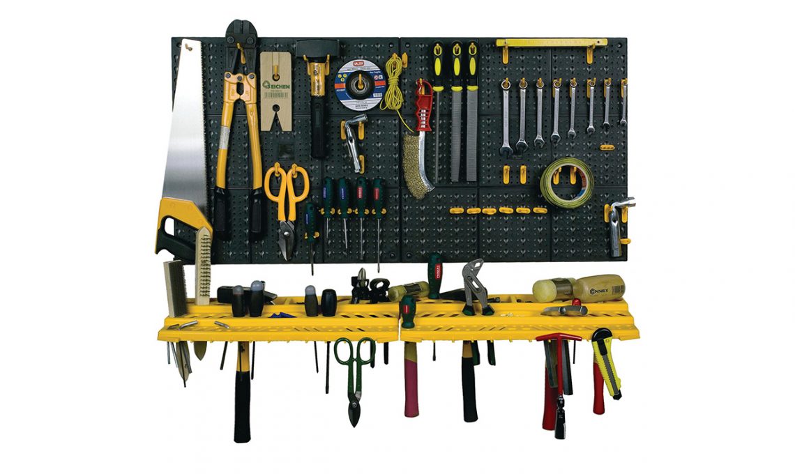 Di base è un sottile pannello di plastica o legno traforato. Ma poi basta aggiungere ganci, mensole, contenitori, cassettini e rastrelliere per trasformarlo nel migliore amico di chi ama l'ordine e vuole sempre tutto a portata di mano.