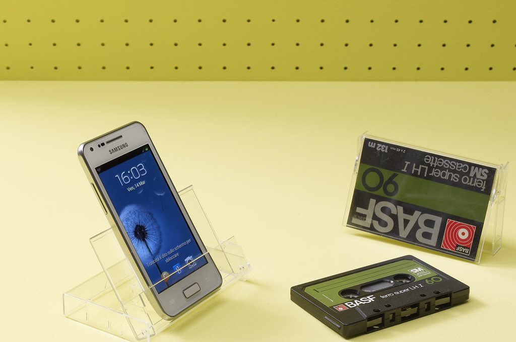 Ti serve una vecchia custodia in plastica da musicassetta, togli la carta interna e girala su se stessa il più possibile: ecco pronto in un attimo il tuo supporto, trasparente e minimale!