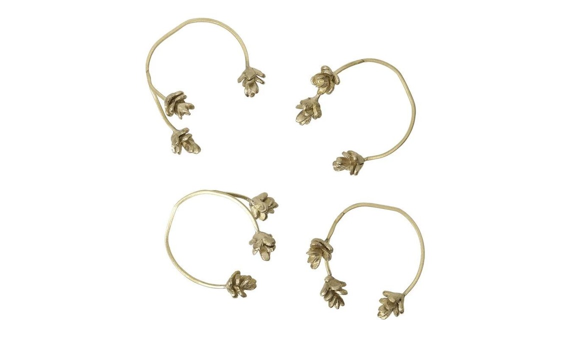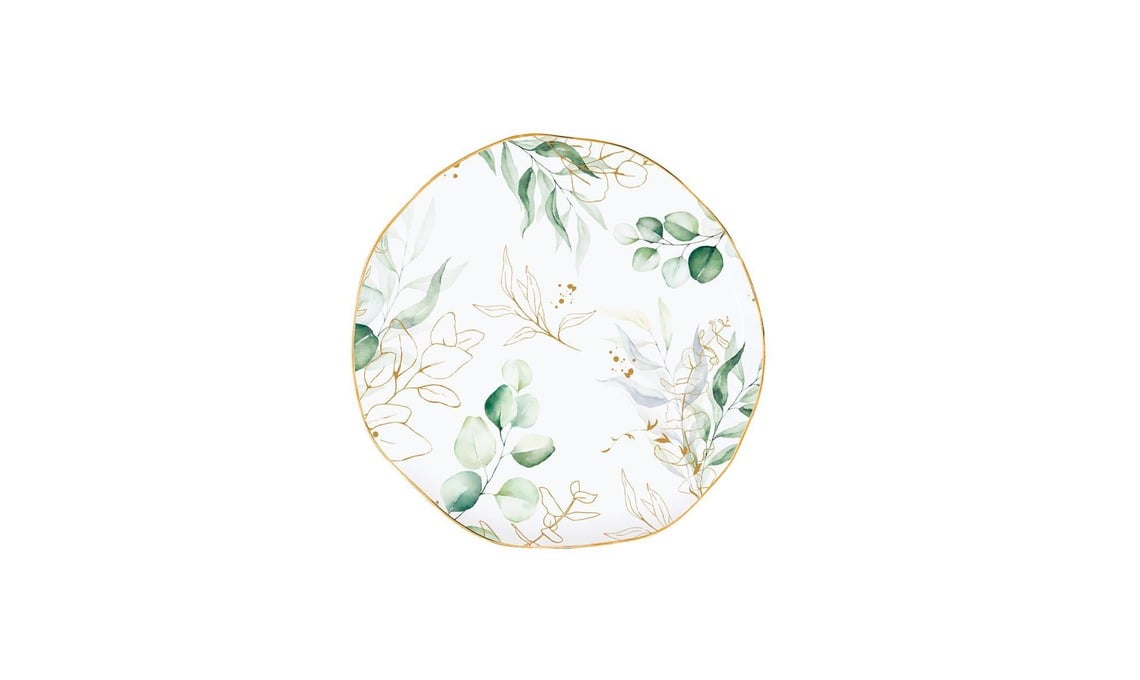 Giuditta ha scelto oggetti moderni e leggeri che accompagnassero la gamma dei fiori dipinti e un centrotavola composto in un cesto, con candele, rametti verdi e qualche foglia di metallo dorata.
