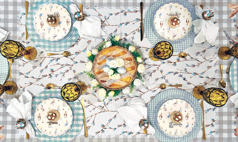 e l’ineffabile – fiori o cactus in testa, capelli al vento e aria francese – diventassero l’essenziale» dice. Piatti [qgi_lab], tovaglia [Lisa Corti].