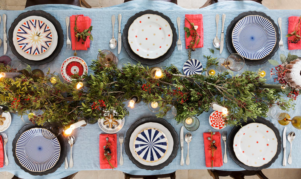 1. Allestisci una tavola in tema natalizio per sei o quattro persone.
