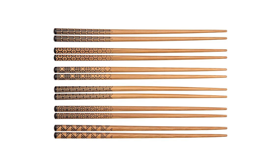 3. Bacchette: una fissa e l'altra in movimento, simboleggiano la dualità dello yin e dello yang, la mano l’essere umano che sta al centro. Se vuoi evitare i coltelli, servi i piatti già tagliati in modo che possano essere divisi pizzicando con le bacchette