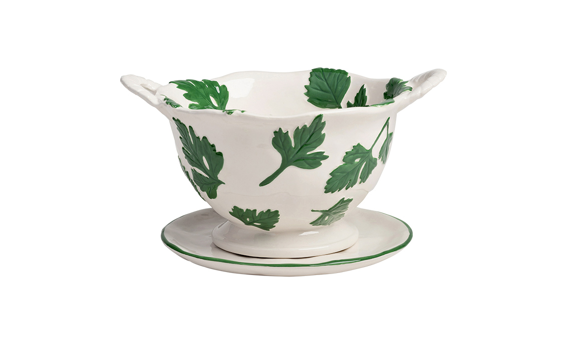 Servi in una ciotola con un filo d’olio in più, un ciuffetto decorativo di prezzemolo e due spicchi di lime.