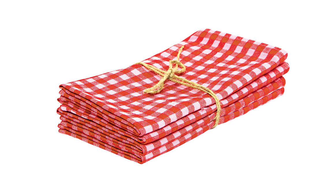 Uno sfondo a quadretti che catalizza l’attenzione e la semplicità di poche pietanze da servire in mini contenitori super cool. Si comincia dalla tovaglia... non stirata!