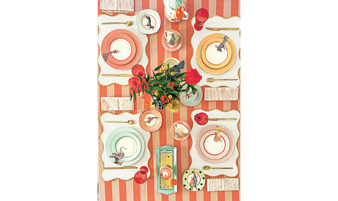 Per la tavola settembrina abbiamo scelto di mettere a confronto due diverse interpretazioni dello ‘stile a righe’ suggerite dalle nostre lettrici Silvia Perrotta e Beatrice Sannino: Silvia definisce la sua mise en place in rosa «un circo allegro, dove la tovaglia evoca l’idea di un tendone che ospita animali esotici, liberi e felici!»; Beatrice parla di un mood ‘vintage con un twist’ in cui le righe da mare incrociano le ceramiche della nonna.
