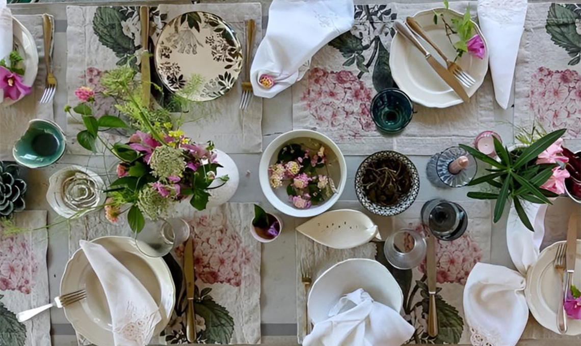 Appassionate di tavole chic e legate da una bella amicizia nata sui social di CasaFacile, ‘Le amiche in tournée’ (amano definirsi così) hanno iniziato a incontrarsi in giro per l’Italia: «Questa mise en place è stata realizzata nel mio giardino ligure, sotto i rami di ulivo. Hanno partecipato tutte le mie amiche... per questo la definirei una tavola in tournée!». Lei è Valeria D’Agatae insieme a @ziavirna, @susannagiacomini, @giudittastradesign, @raccontamiunatavola, @beatricesannino, @noccioletostate e @lacucinella ha pensato a un’apparecchiatura che sembrasse ‘strappata’ a un giardino in fiore.