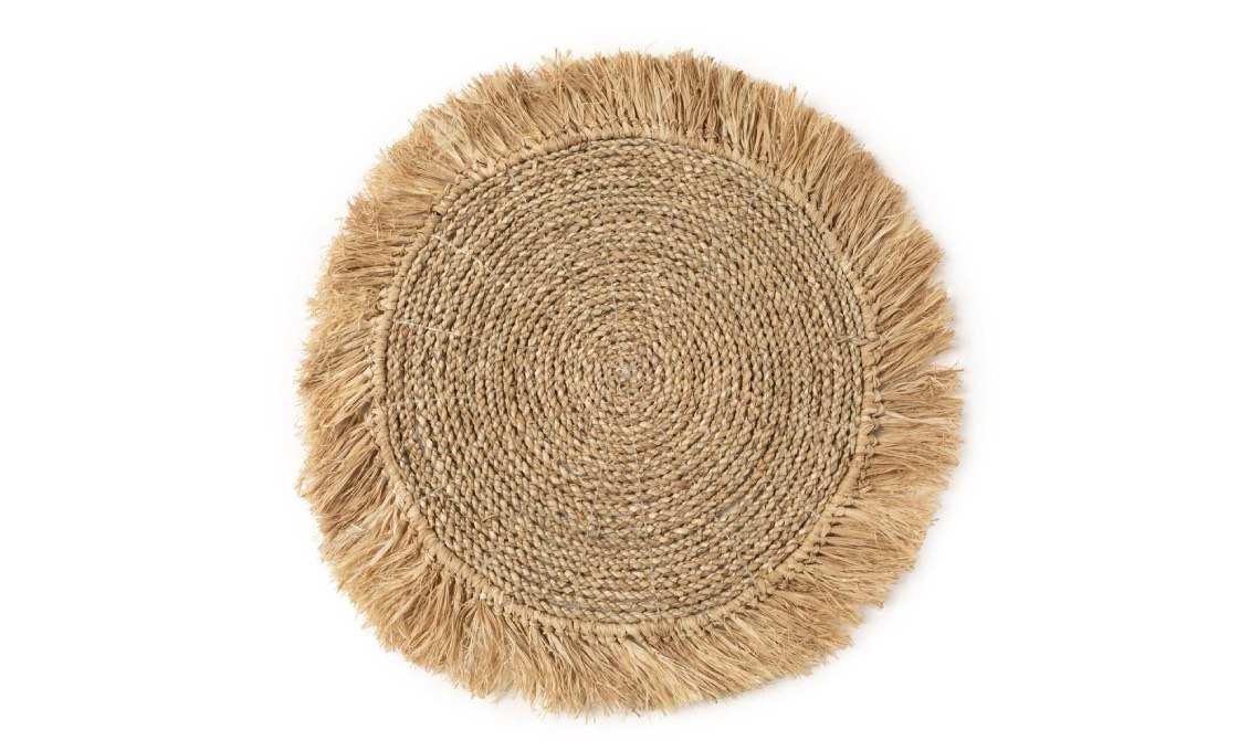 3. Sottopiatti Sfrangiati, in rattan, ricordano un po’ un cappello o il tetto di una capanna. Il mood si fa ancora più convincente se li abbini a posate dal manico di bambù.