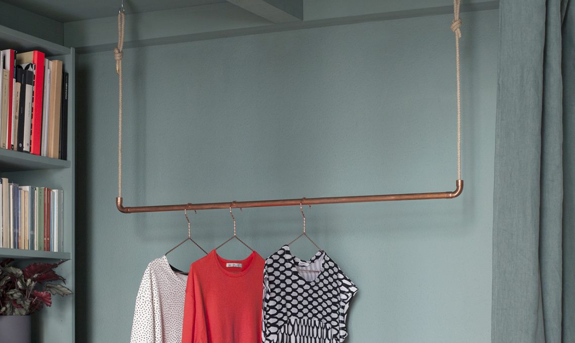 Appendi i vestiti in modo décor: crea uno stender partendo da un tubo di rame e una corda