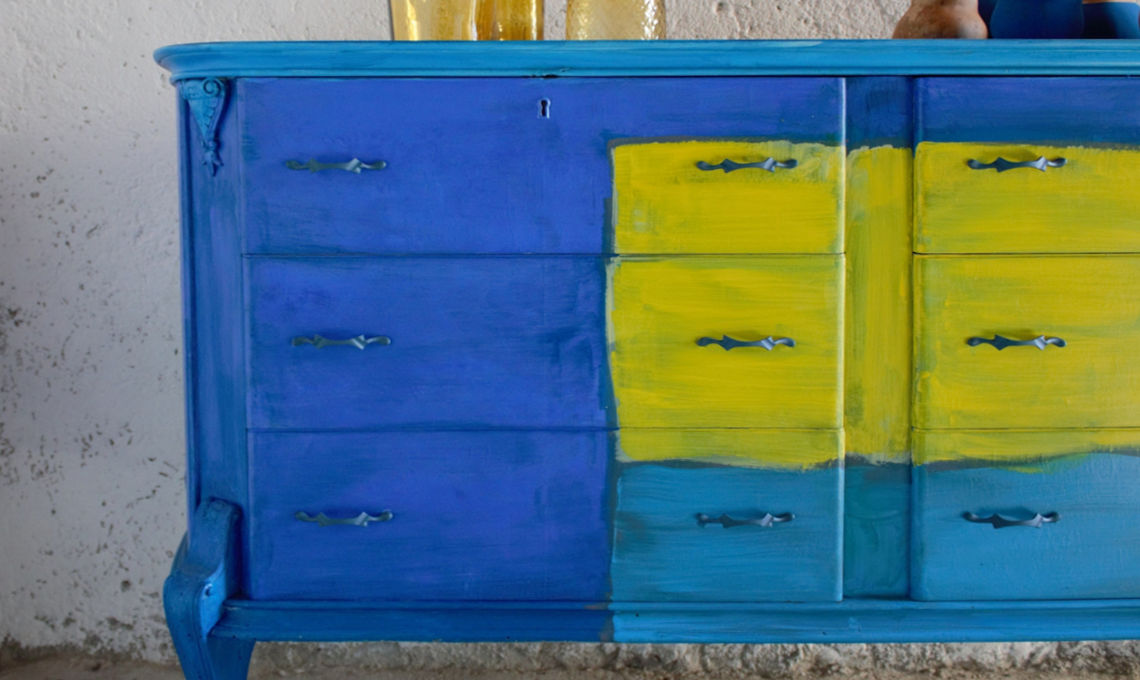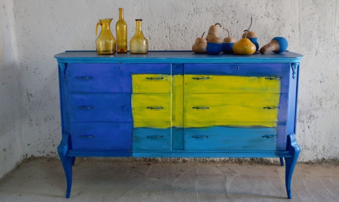 L'investimento è minimo e ciò lo rende non un mobile per la vita, ma un mobile per un mood: per il pezzo da decorare visitate un mercatino dell'usato, aprite la pagina di un market place online o semplicemente andate in cantina dalla zia e già con meno di 50 euro (se non gratuitamente) avrete la vostra base di partenza; per la decorazione giocate con i colori che avete già aperto per quel vecchio fai da te. La tecnica è inesistente: nessun nastro di carta da applicare, nessuna riga retta da seguire, non c’è bisogno di carteggiare e non c'è neanche da aspettare il tempo necessario tra una mano e l'altra; i colori si devono fondere direttamente sul vostro mobile/tela facendo nascere qualcosa. Se l'uso degli smalti vi spaventa, vi do un consiglio: usate le tempere dei vostri figli o nipoti, facili da applicare a pennello e da mischiare, rapide nell'asciugatura. Il segreto sta in una bella mano di trasparente (satinato o lucido, a vostro gradimento!) data alla fine per fissare la vostra opera a imperitura memoria (o fino alla prossima voglia di cambiare, che potrete soddisfare a cuor leggero)!