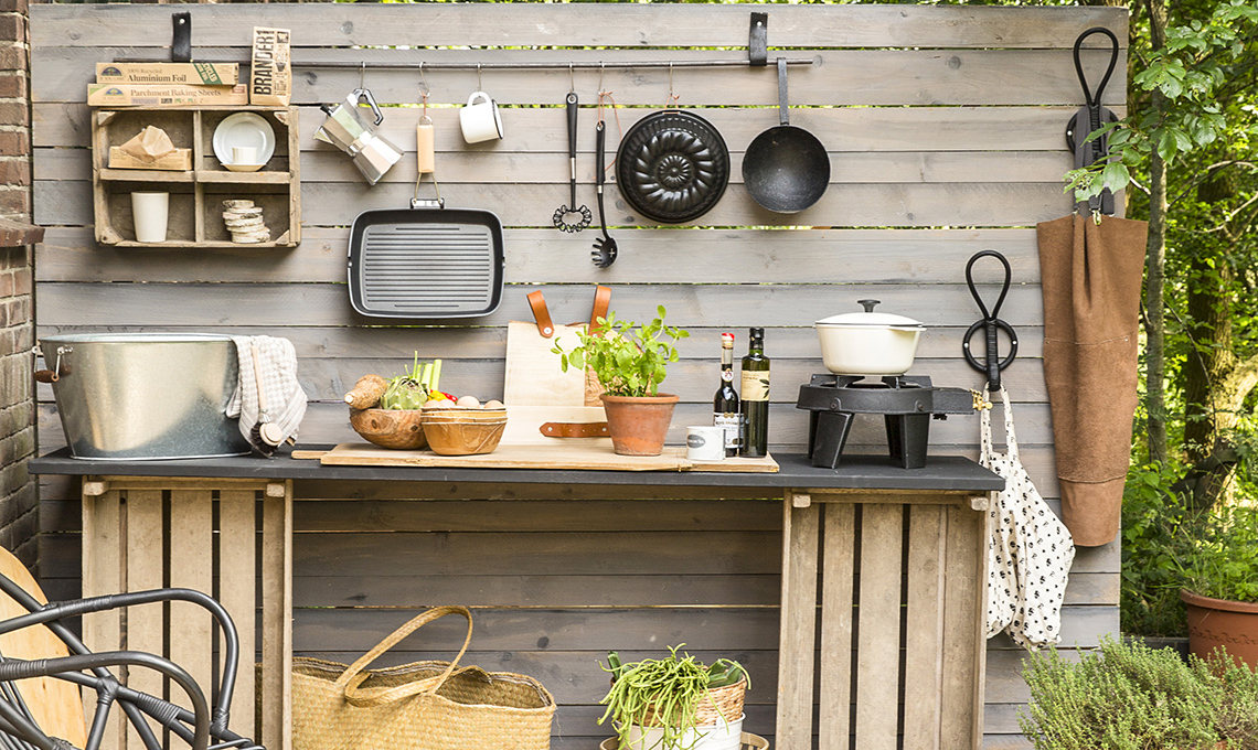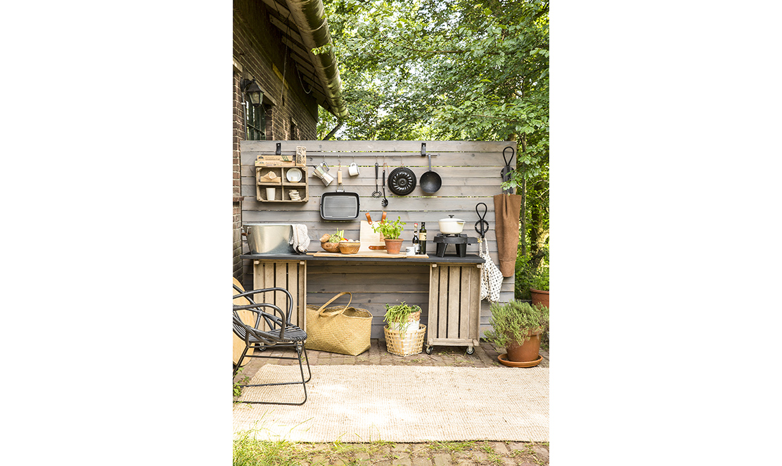 - Attrezza il top con una bacinella ovale e un fornello a gas da campeggio.