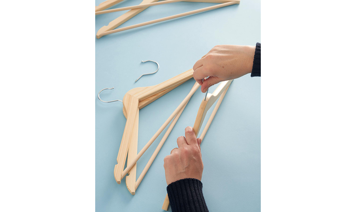 4. Svita il gancio di metallo delle grucce. Se fosse incollato taglialo con un seghetto per il ferro e leviga bene il taglio.