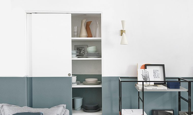 - Sui listelli che non sostengono l’anta fissa i ganci a vite. Con viti e tassello fissa la mensola alla parete, verificandone la giusta inclinazione con la livella a bolla.