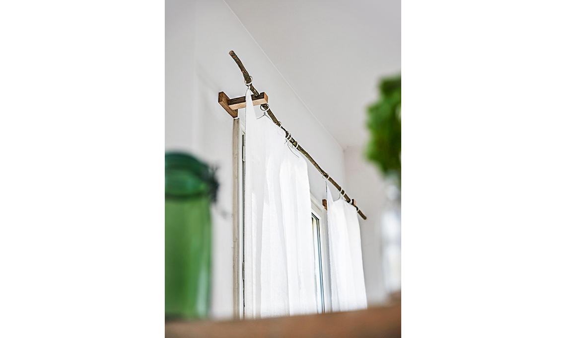 - Infila gli anelli sul ramo e fissa la tenda alle clip, posizionate a una distanza costante.