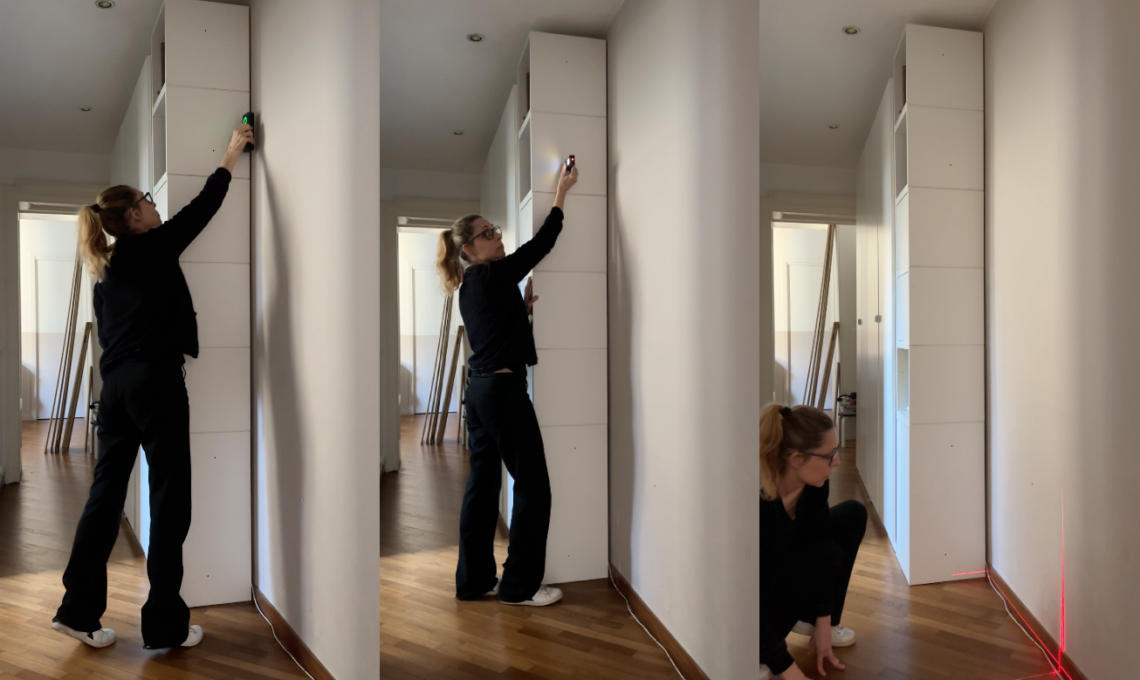 Prima di procedere con la realizzazione del progetto è bene prendere tutte le misure corrette e verificare la possibilità di forare i muri. Sono quindi molto utili un rilevatore digitale e un distanziometro. Inoltre una livella laser ci aiuta a mettere in bolla tutti i pezzi.