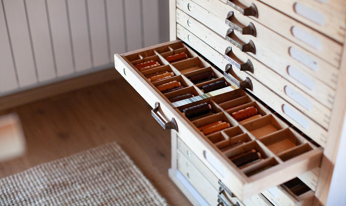 - Appena il colore sarà asciutto, rimuovi la carta e monta nuovamente le maniglie ai cassetti e posiziona i numeri o le targhette in metallo. Non resta che riorganizzare la tua craft room e riempire i cassetti con bottoni, fili e nastri, magari dividendo i materiali per colore... uno per ogni cassetto!