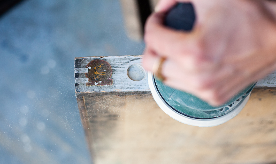 - Se vuoi ridipingere il mobile, ti consigliamo di levigarlo bene prima, soprattutto se la vecchia vernice tende già a sfaldarsi. Io ho scelto di eliminare completamente la vernice dai cassetti per far riemergere il bellissimo legno originale.