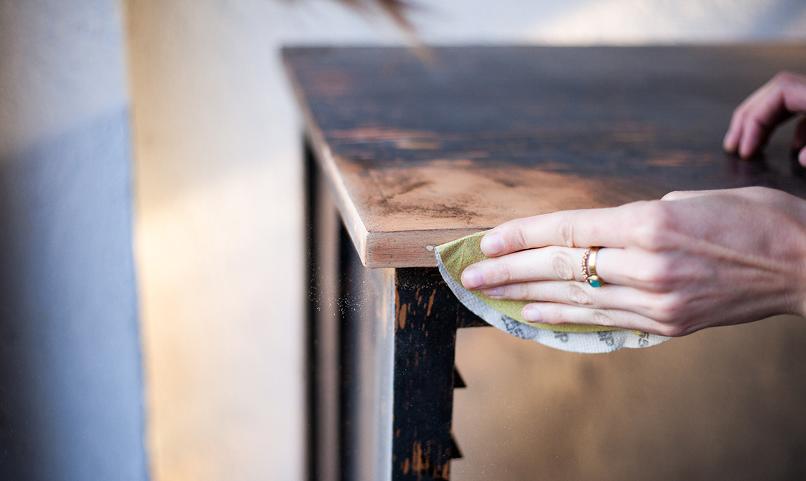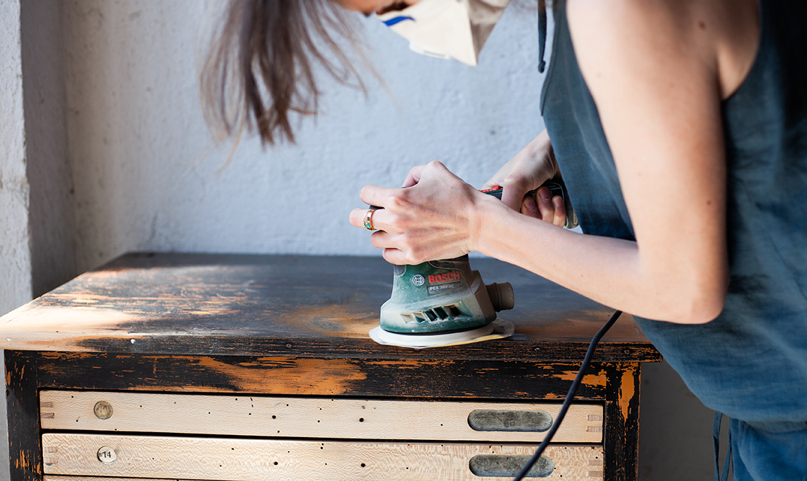 - Pulisci bene il mobile in tutte le sue parti: aspira la polvere accumulata nei cassetti e poi passa uno straccio umido. Ricordati di usare sempre i dispositivi di protezione individuale per la lavorazione del legno (mascherine e guanti), la polvere di legno duro e le vernici non sono proprio salutari!