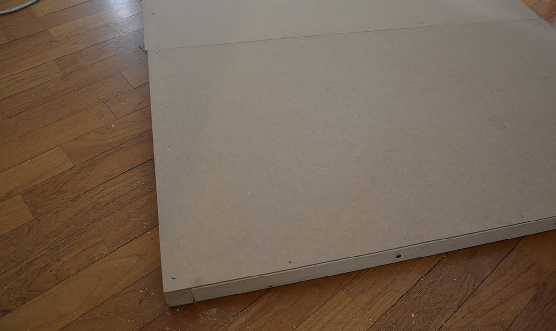 Tagliare i pannelli di MDF a misura. Serviranno 6 pannelli 100x50,5cm e 2 pannelli 100x48,5cm.