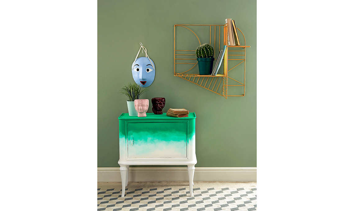 Il comodino era nascosto tra una pila di buffet, madie e credenze e abbiamo speso solo €15! Un semplice fai-da-te ad effetto dégradé.