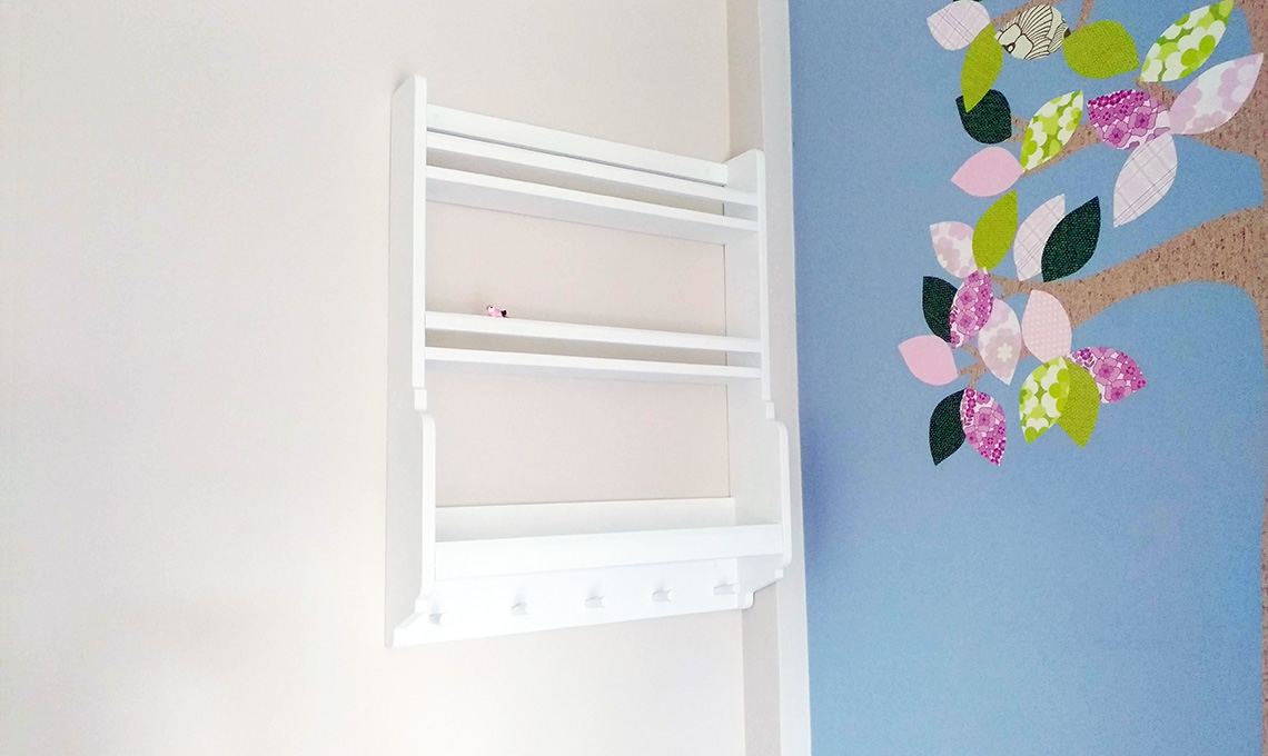 Per questo progetto mi sono divertita a cambiare la funzione ad un comune elemento da cucina: la piattaia. Mi serviva per una cameretta un complemento multifunzione e pratico, che potesse contenere sia qualche libro, ma anche oggetti e accessori. Doveva affiancare il letto al posto del classico comodino, essere poco profondo per non infastidire i movimenti e accessibile.