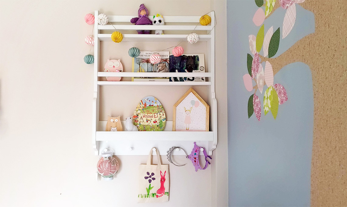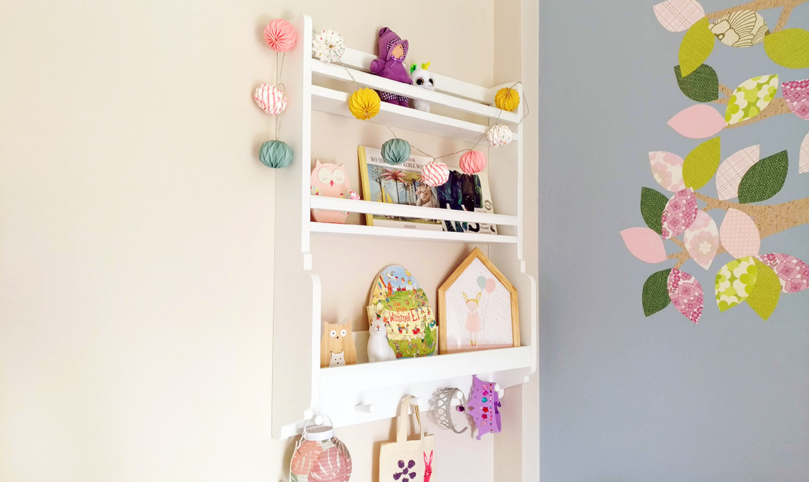 Il nuovo portaoggetti è diventato il posto dove la bimba tiene i libri della buonanotte a lei più cari, ma anche i peluches, la lucina per il buio, coroncine e piccoli segreti. In questo angolo della camera, tutto è a portata di mano e la bimba si diverte a modificare la disposizione delle cose a suo piacimento.